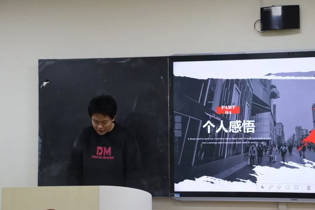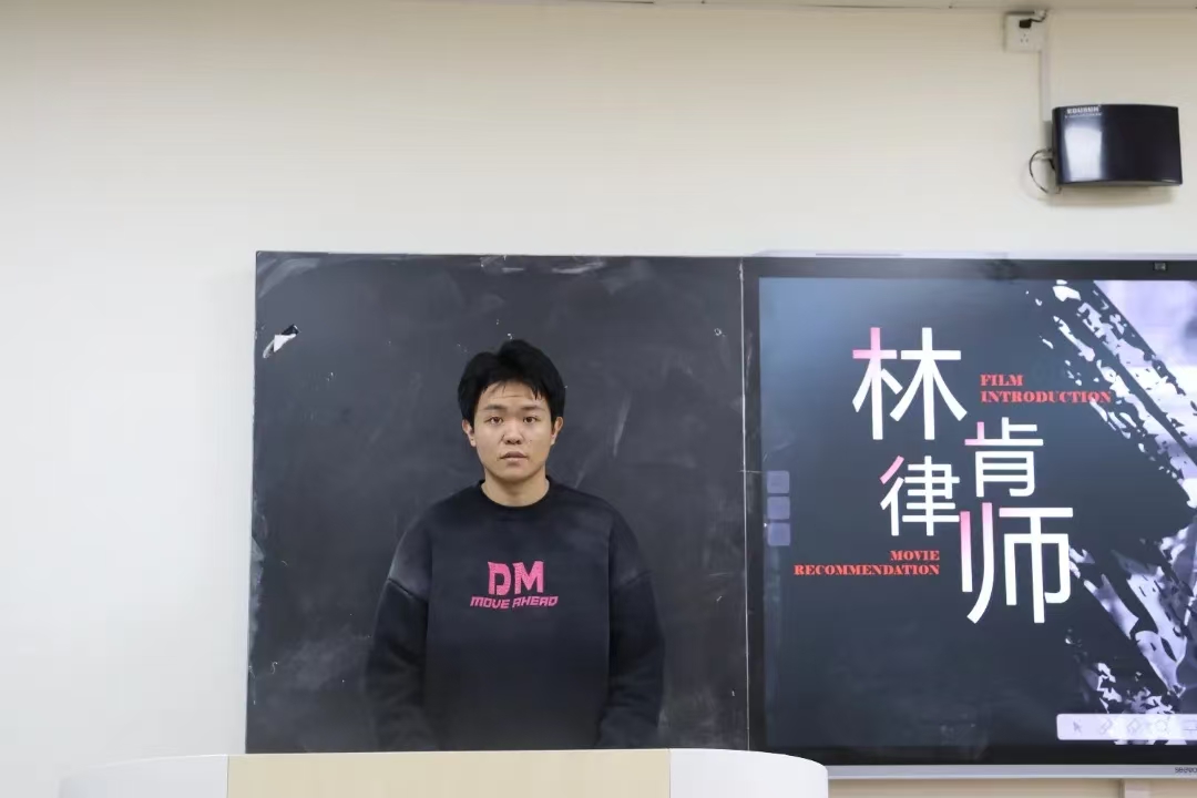 3.期刊部实习编辑霍思翰分享了他对影片中印象最深刻的地方,其分析了主人公收集证据的复杂与曲折性,并对证人证言合法性的判别有着深刻的感触。
