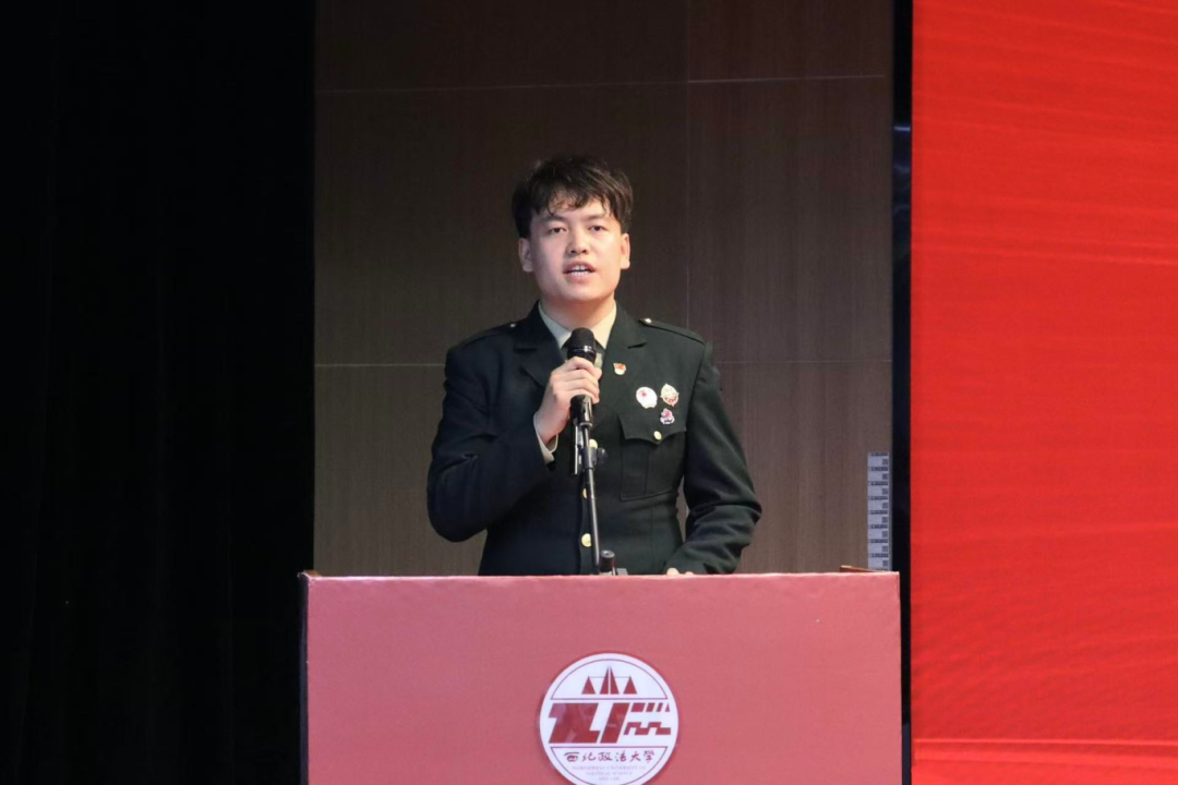 2022级国家励志奖学金获得者张博巍作优秀学子分享报告,围绕个人成长历程、军旅心得、社会服务等方面,鼓励学弟学妹提高个人素养和能力,积极参与社会服务,用奋斗的青春回报社会。