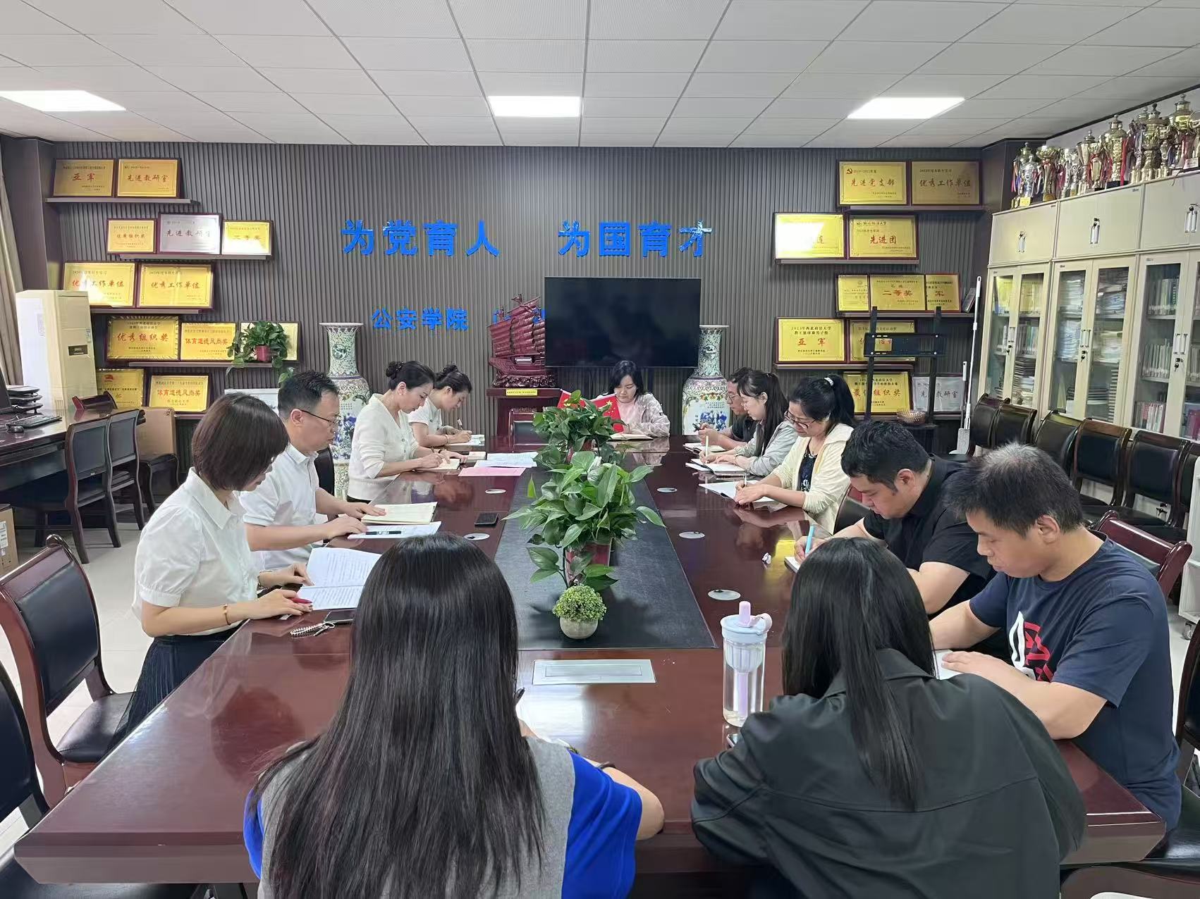 会议传达了学校迎评工作指导思想,强调围绕“以评促建、以评促改、以评促管、以评促强”目标,扎实做好整改中期“回头看”各项工作。结合公安学科特色,学院提出:对标自查,精准整改:成立专项工作组,对照审核评估专家组反馈问题清单,逐项核查整改成效,完善教学档案、试卷、毕业论文等支撑材料;强化特色,突出亮点:聚焦公安实战化教学改革,梳理专业课程体系优化成果,展示“战训结合”育人模式成效。