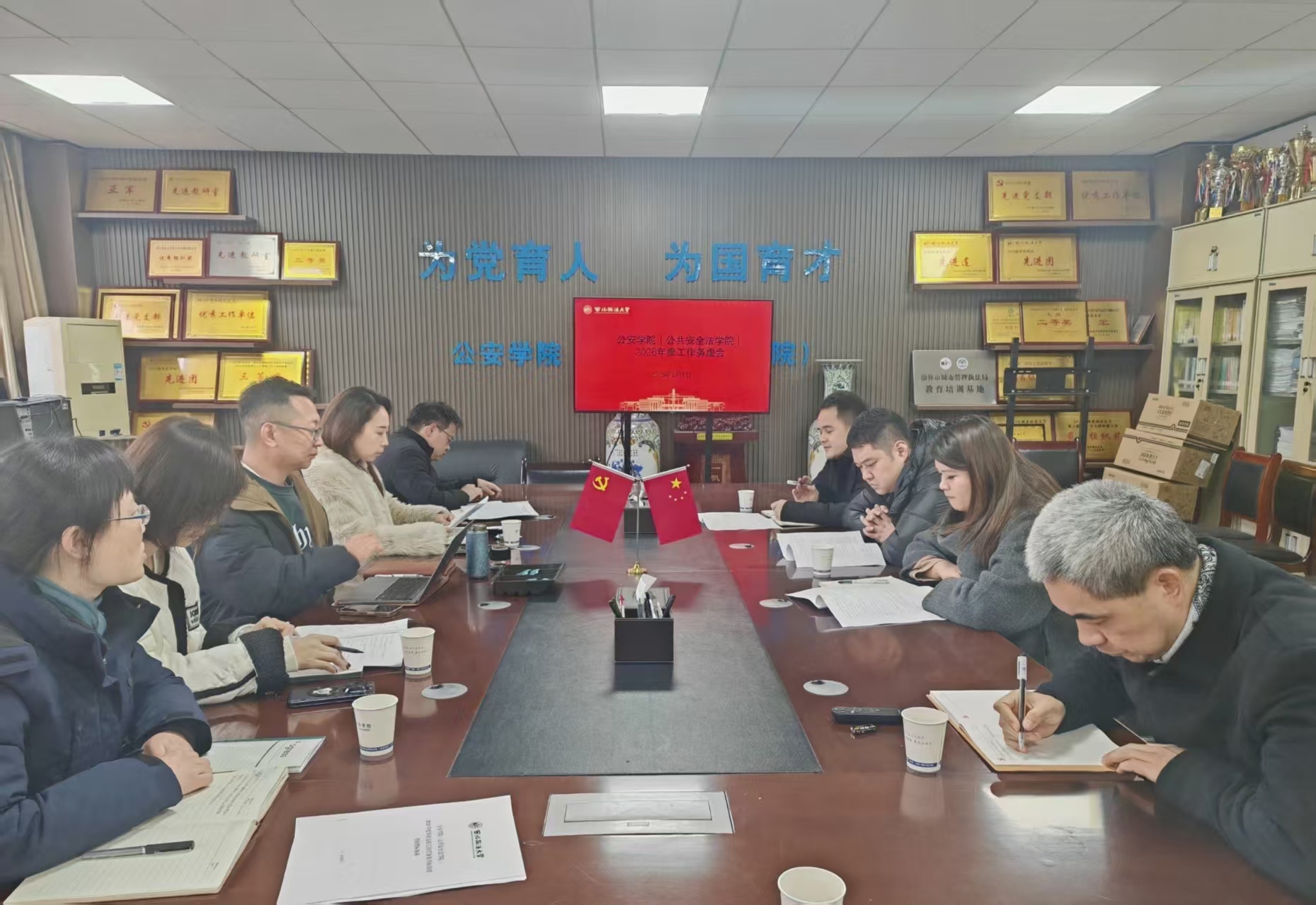 会议要求,一要强化党建引领,持续深化理论武装,严格落实意识形态工作责任制,不断提升凝聚力和战斗力,为学院事业发展提供坚强政治保障。二要聚焦学科专业建设,加强师资队伍建设,优化课程体系,深化教学改革,着力提升人才培养质量。三要聚焦公安实战需求,深化与实务部门的合作交流,构建特色鲜明的科研创新平台,强化服务效能。四要加强学生管理与服务,关注学生成长成才,完善就业指导服务体系,引导学生树立正确的职业观和价值观,提高学生就业竞争力。五要统筹推进学院各项事业协同发展,强化内部管理,营造和谐稳定的发展生态。